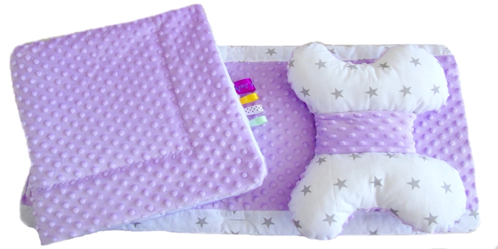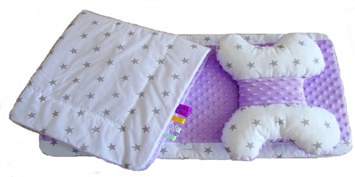 Komplet do Wózka Wkładka Kołderka Motyl Minky lawenda Bawełna gwiazdki Zygzak Baby