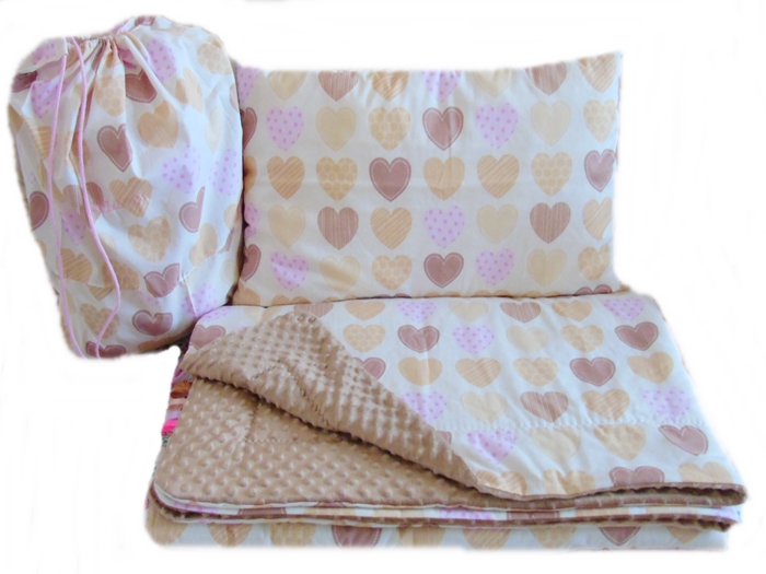 Komplet bardzo praktyczny. Doskonale pasuje do łóżeczka dziecięcego. Do przedszkola, żłobka czy na wszelkie wyjazdy turystyczne.