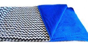 Śpiwór dla Dorosłych 200cm ciepły Haft Minky chabrowy Bawełna zygzak czarny Zygzak Baby